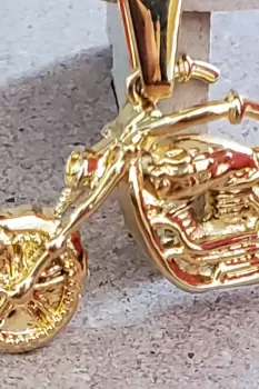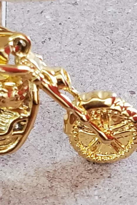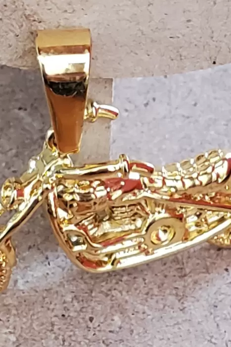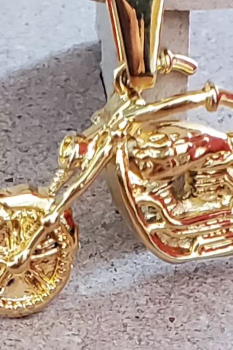 Bonito y detallado dije de motocicleta , es de acero inoxidable, mide 4cm de largo x 1.8cm de alto sin argolla. Esta nuevo , sin uso, sin detalles.
