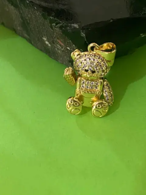 Dije osito movible 🐻. Hermoso dije dorado con cristales tipo zirconia en cabeza, pecho y brazos, en acero inoxidable de alta calidad