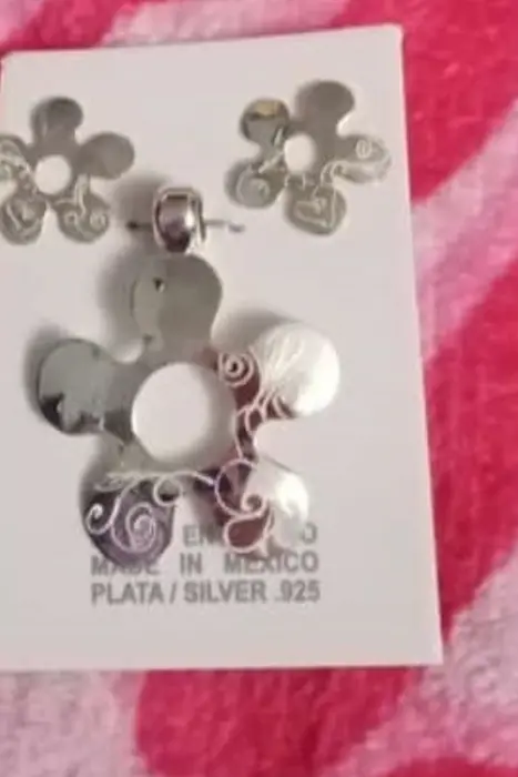 Hermoso juego de plata en forma de flor, viene el par de aretes y un dije hecho de plata de Taxco .925