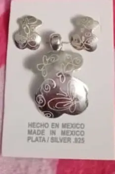 dije y aretes de plata de osito