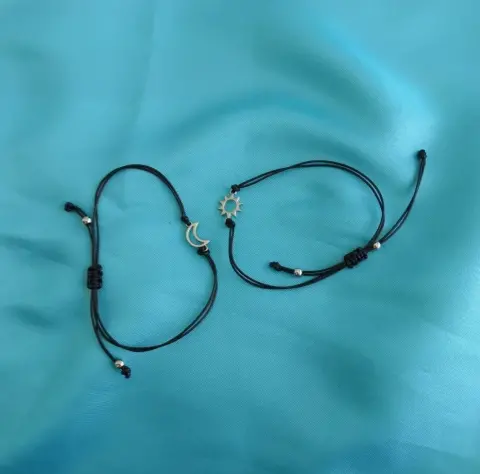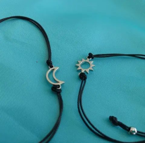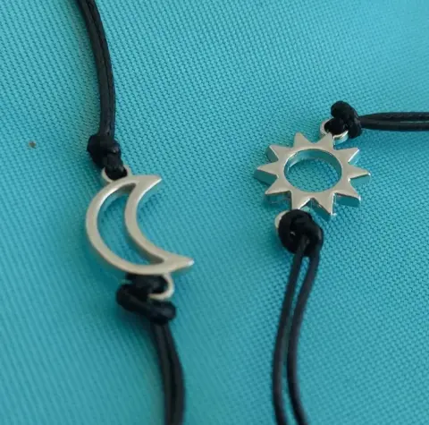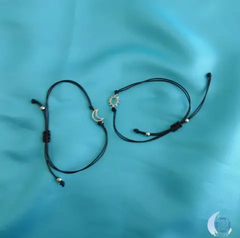 Dúo pulseras sol y luna. Par de pulseras de hilo con dijes de sol y de Luna excelentes para pareja o mejores amigos o el uso deseado