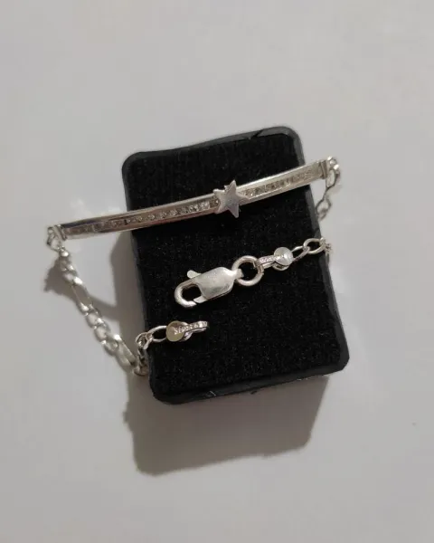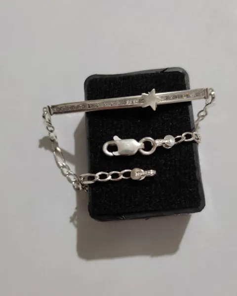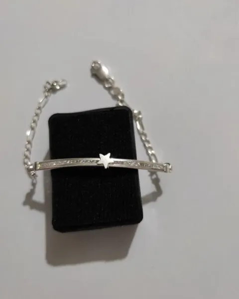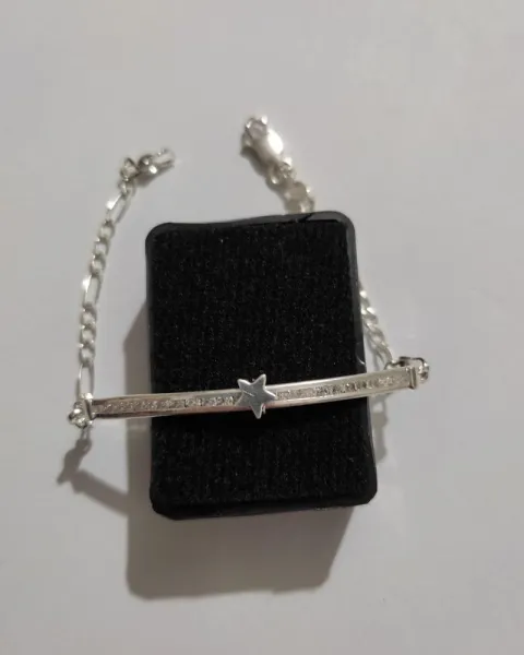 Esclava con zirconia y dije en forma de estrella. Mide 18 cm de largo. Plata ley .925 garantizada. Luce hermosa puesta.