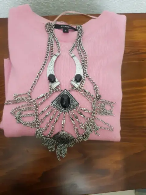 Lindo collar, se ve muy elegante puesto, puesto 1 ocasión es un accesorio muy bien acabado nada frágil y luce mucho con vestido formal, informal y/o suéter como se muestra en 1 de las fotos