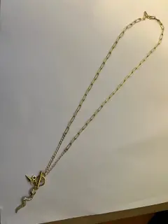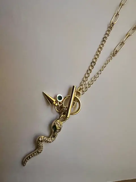 Hermoso collar de serpiente, con los ojitos verde esmeralda y otros detalles coquetos