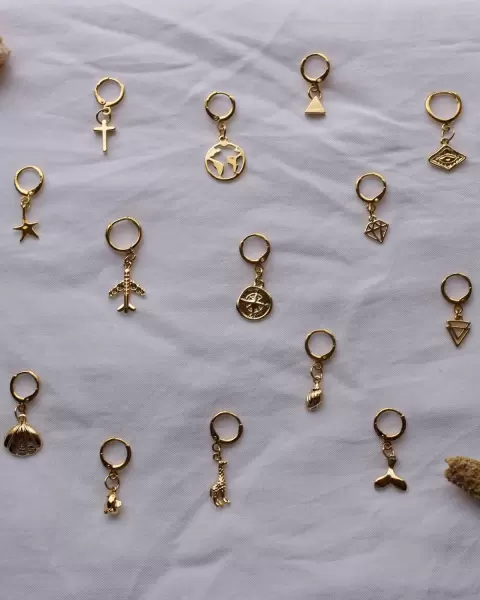Huggies de chapa de oro tengo diferentes dijes puedes combinar los dijes o llevarte el par del mismo.Pregunta por los dijes disponibles