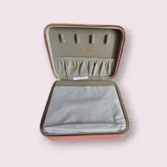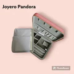 Joyero marca pandora color rosa. Joyero con dos niveles, tres compartimentos, con lugares específicos para anillos. Totalmente nuevo. Incluye bolsa pandora