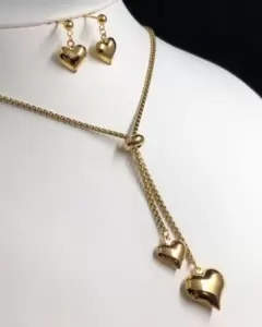 Juego corbatín corazón acero premium. 💕Hermoso juego estilo corbatin ajustable con aretes en acero premium soplado hipoalergénico. No se mancha, no se despinta, no pierde su brillo ni textura.Toda nuestra joyeria es nueva y con calidad premium.Ideal para chicas lindas, como tu!😍
