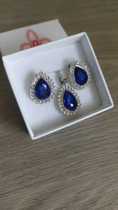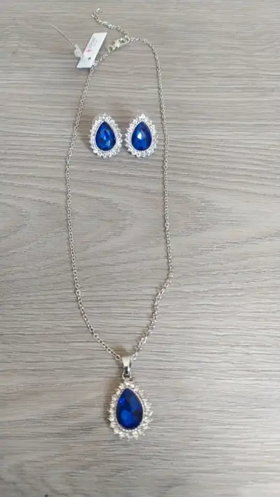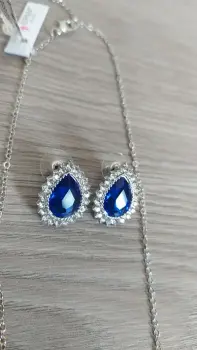 Juego de aretes y collar. Juego de aretes y collar nuevos. Aretes azules con circonias. Excelente material