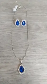 Juego de aretes y collar nuevos. Aretes azules con circonias. Excelente material