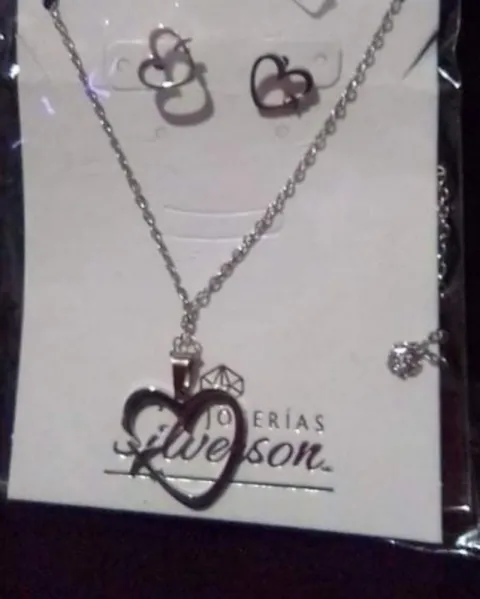 Juego de cadena y aretes. Juego de adenita y arete corazón y avion
