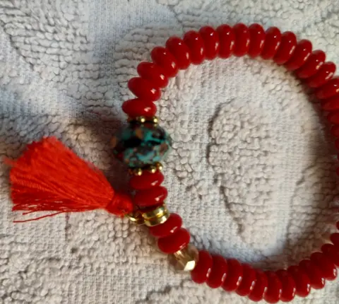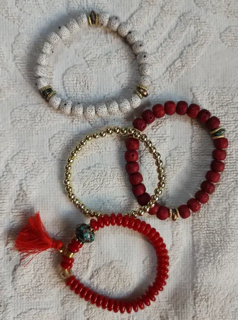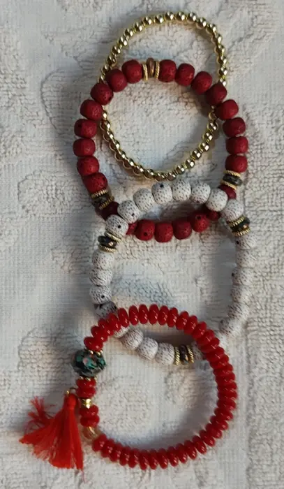Juego de pulseras. Juego de 4 pulseras en contraste a color rojo, de resorte