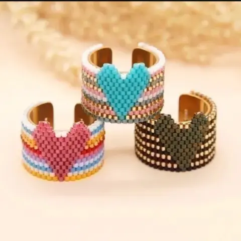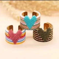 Anillos abiertos, acero inoxidable, trenzado de corazón, enchapado. Colores en rojo, azul y negro