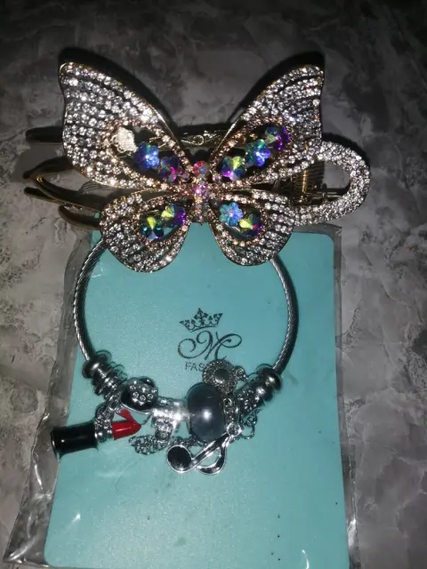 Lindo💅💅☺️ set de pulsera Pandora y peineta. Para las reinas de la casa👑lindo set de púlcera Pandora y peineta, peineta de pedrería multi color