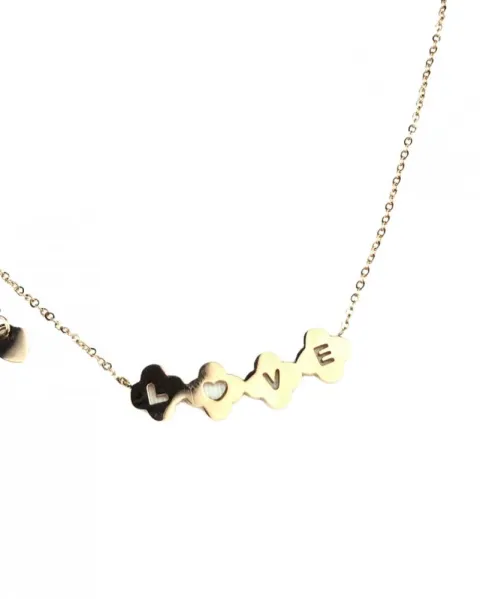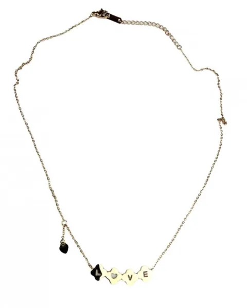 Cadena con dije LOVE y corazón en acero inoxidable dorada.