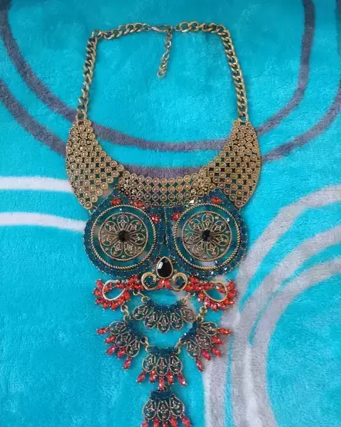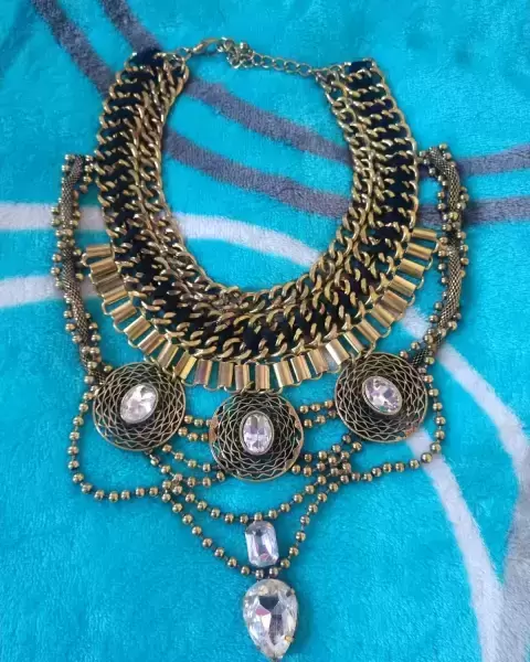 Maxicollares en tono dorados con piedras coloridas, sin ningún detalle