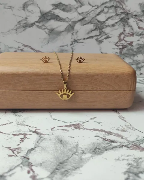 Paquete que incluye:Collar y aretes de ojo (acero inoxidable)LentesPinza de perla