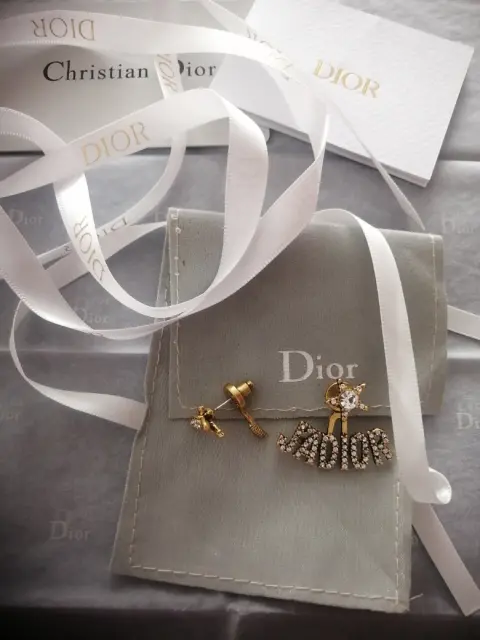 Hermosos pendientes CD con un arete y el otro con las letras con swarovskys, son de metal nvos sin detalles viene con lo que vez y cajita bolsa dust bag