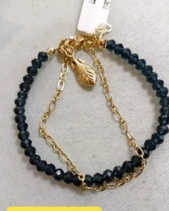 Pulcera de cristal oro laminado 18k. Pulcera oro laminado con cristal negro