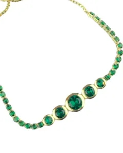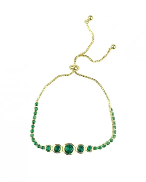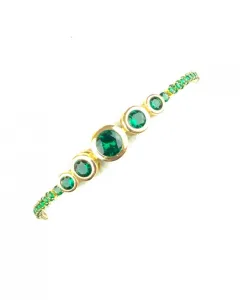 Bellísima pulsera de bisutería ajustable en cristales de color verde profundo montados en acero inoxidable color dorado.