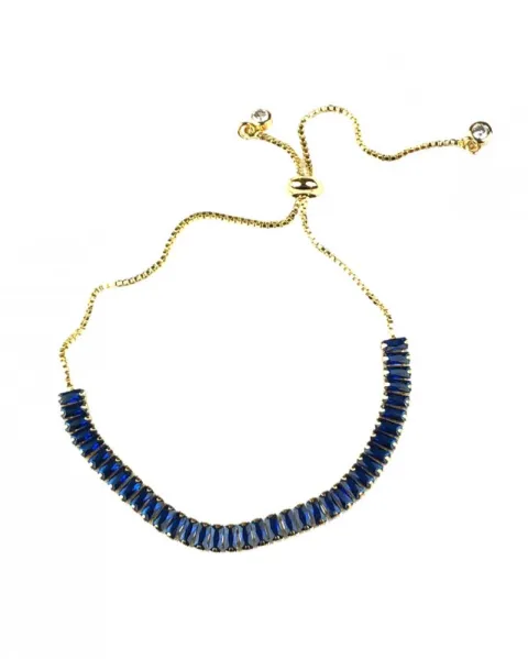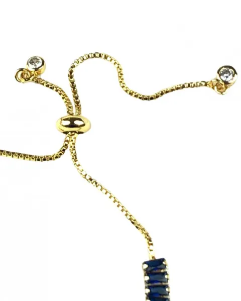 Pulsera ajustable con cristales en color azul y el resto en acero inoxidable dorado, con lindos brillos a final de las correas.