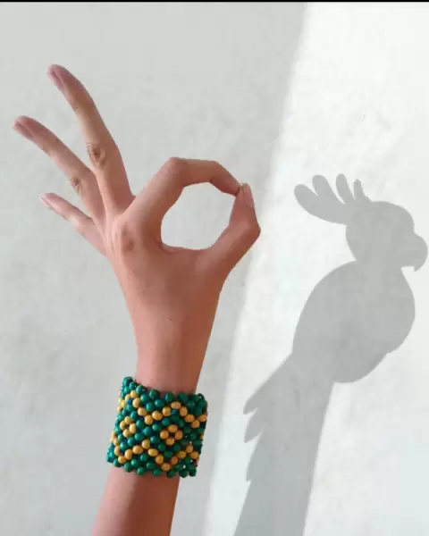 PuLsErA aNcHa ArTeSaNaL (ᗒᗩᗕ). PuLsErA ArTeSaNaL:Color verde y amarillo✧Diseño de rombos✧En perfecto estado!✧Ancho 5.5cm-Largo 20cm☞Si te gusto esta prenda visita mi Closet hay más prendas que te Fascinaran!😉 y por cualquier duda estoy a tu disposición✿
