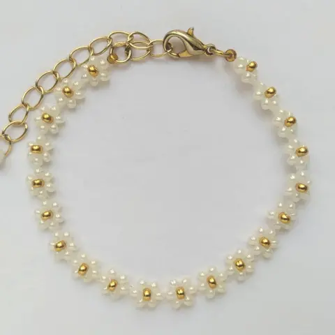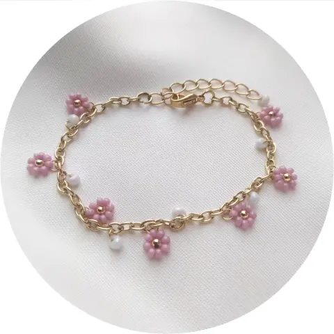 Pulsera chapa de oro flores de chaquira