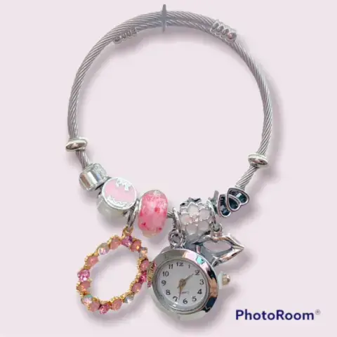 Pulsera con 6 charms diferentes y reloj incluido, linda y perfecta para cualquier ocasión.