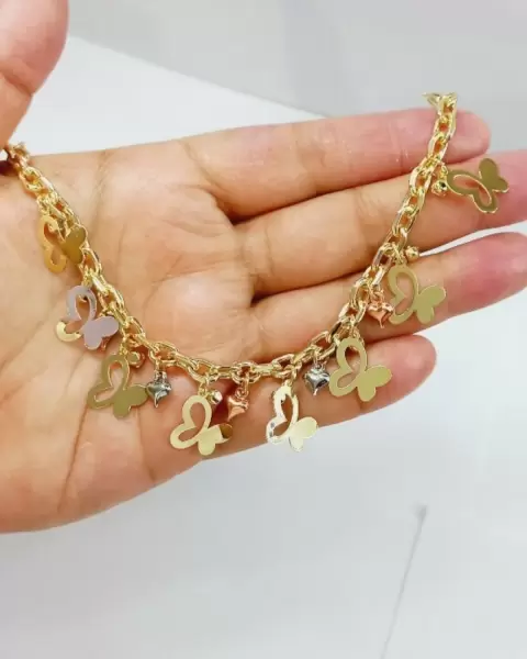 Pulsera con Colgantes. Bellísima pulsera con colgantes en oro laminado de 3 tonos... te encantará!!!Largo 20 cms + extensibleCompletamente nueva, sin detalle y lista para enviar.*PRECIO FIJO POR COMISIÓN*
