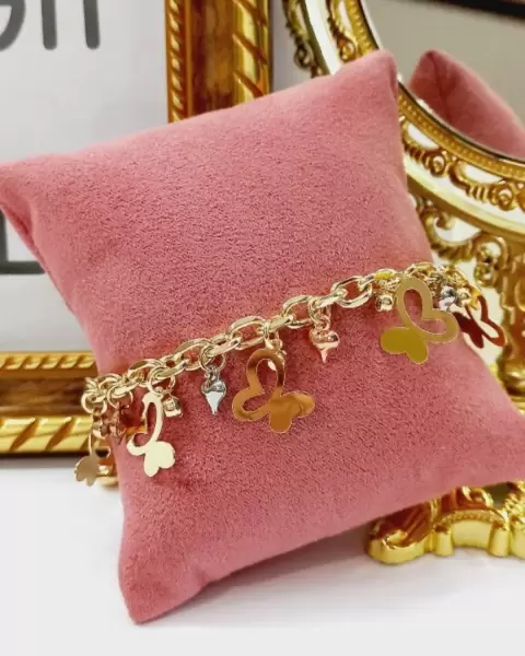 Bellísima pulsera con colgantes en oro laminado de 3 tonos... te encantará!!!Largo 20 cms + extensibleCompletamente nueva, sin detalle y lista para enviar.*PRECIO FIJO POR COMISIÓN*