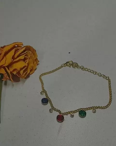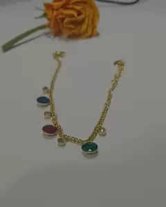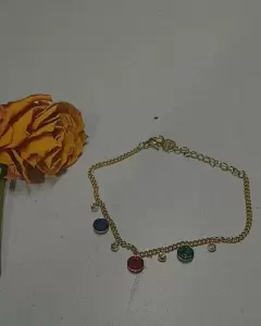 Pulsera de acero inoxidable con bonitas piedras. Pulcera de hacero inoxidable color oro con lindas piedras de colores
