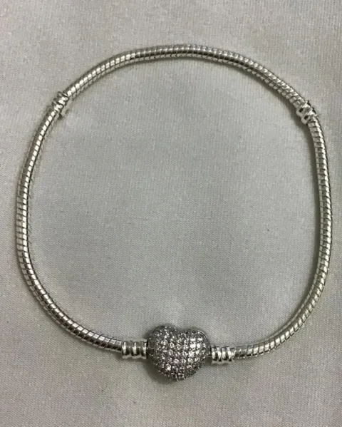 Pulsera de corazón tipo pandora.. Pulsera corazón tipo pandora, mide 21 cm.