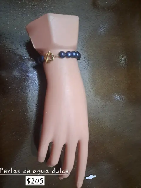 Pulsera de perlas. Pulsera de perlas de agua dulce color azul con broche