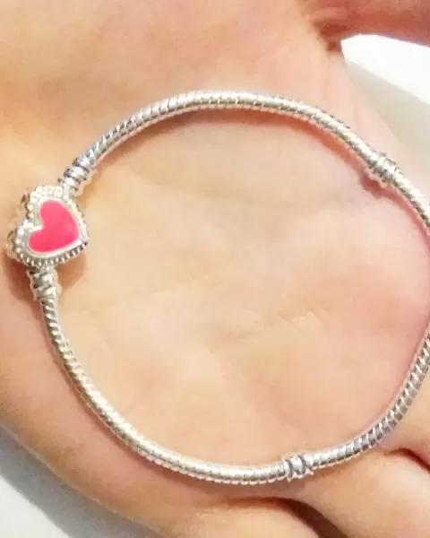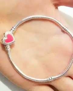 Pulsera flexible con broche corazón 19 cm. Hermosa pulsera flexible de 19 cm, plata 925, que queda para una mano de hasta 17 cm, para que inicies tu colección de charms favoritos