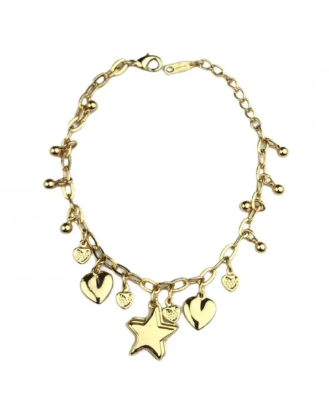 Pulsera Gold Stars. Pulsera en acero inoxidable con corazones y estrellas, con broche de seguridad.