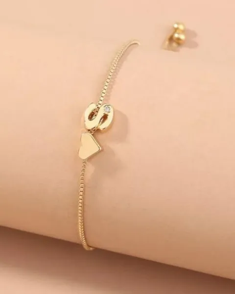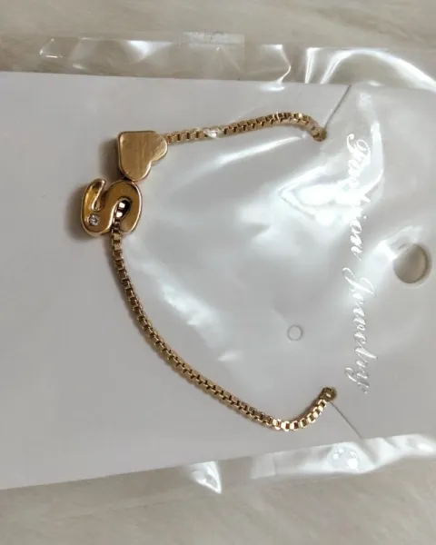 Pulsera letra S. Linda pulsera de letra es aleacion con una zirconia , requiere cuidados como no mojarse ni ponerse crema o perfume sin embargo es de buena calidad, recomiendo ponerle barniz de uñas para prevenir que se manche .