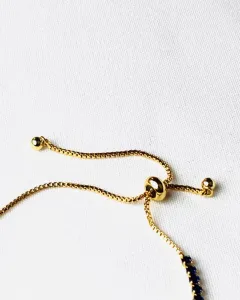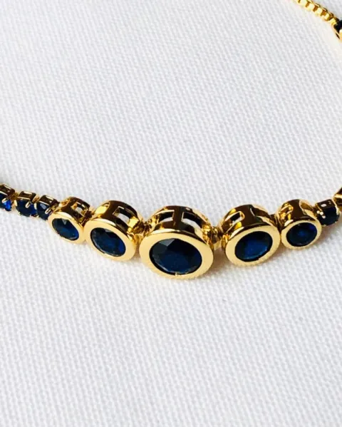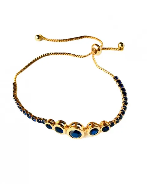 Pulsera en acero inoxidable dorado con cristales azules, es ajustable.