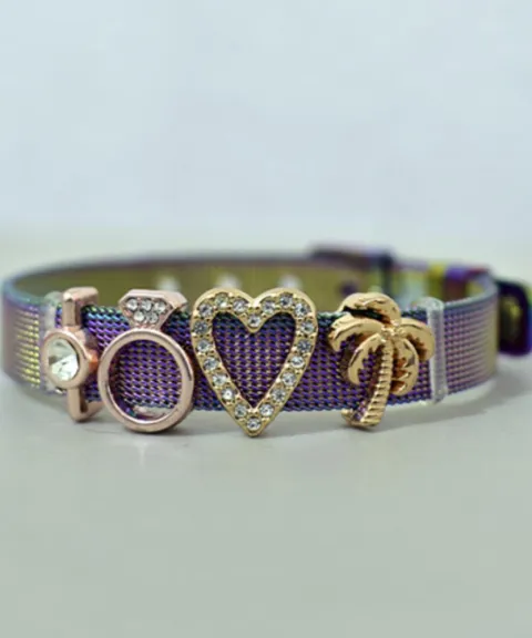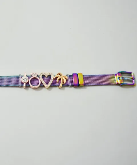 PULSERA DE MALLA MULTICOLOR DE ACERO INOXIDABLE PLATA(Incluye los dijes de la foto)¿Te gustaría obtener una pulsera a tu medida? Aprovecha con esta pulsera ajustable, para que así te evites el tener que llevarla a arreglar o que no te quede. Es ideal para un regalo. Además de ser elegante y tener piedras de zirconia que la hace lucir mejor.Tamaño: AjustableSe puede ajustar de 5.5cm hasta 8cm de diámetro.Perímetro: 14.5 cm-19.5 cmCircunferencia de la muñeca: 13cm-19cmAncho de la pulsera: 10mmMaterial:-Pulsera de acero inoxidable chapado en plata.-Dijes de aleación de zinc multicolor