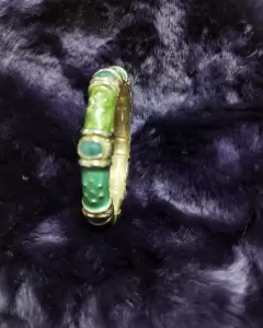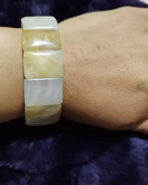 Bonita pulseras de ónix y ha permanecido guardada bastante tiempo en espera de adornar tu mano. Está nueva y en excelente estado; el corte del ónix tiene un acabado pulido que no lastima y está súper cómodo....esta muy padre!!Incluidas pulseras de metal concha nácar.