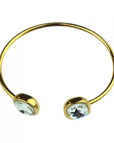 Pulsera orxel en color dorado y cristales enmarcados en cuadrados angulares, totalmente de acero inoxidable que no se mancha ni despinta con el tiempo.