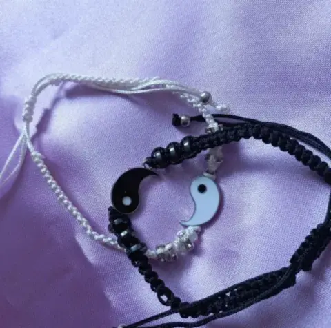 Pulseras Dúo yinyan. Dúo de pulseras tejidas con la símbolo gua de ying y yang, va el par de pulseras