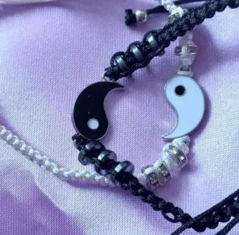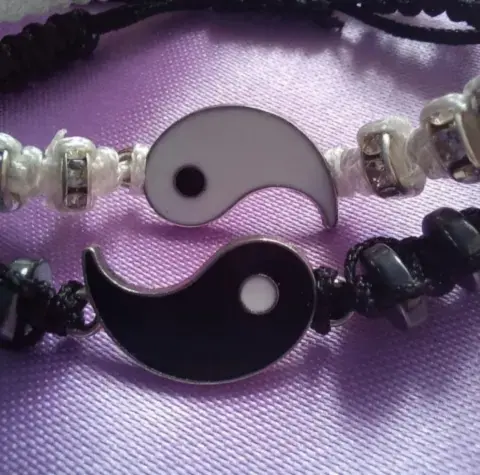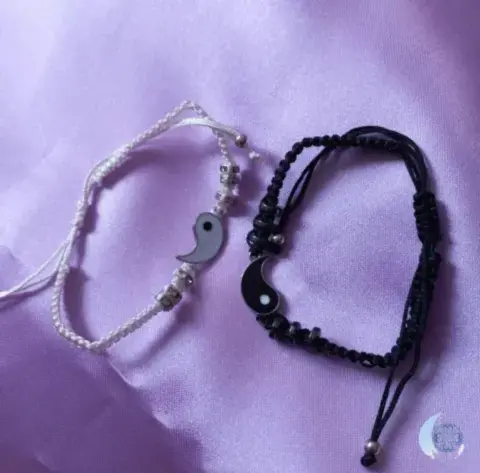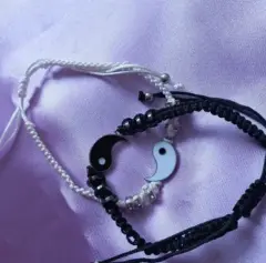 Dúo de pulseras tejidas con la símbolo gua de ying y yang, va el par de pulseras