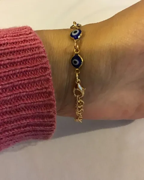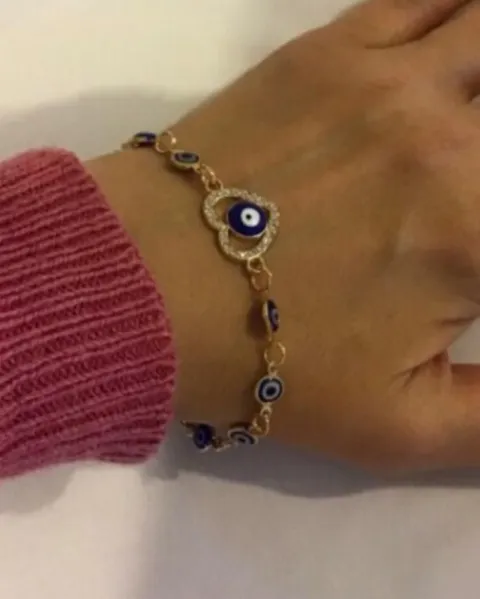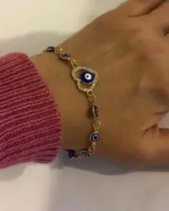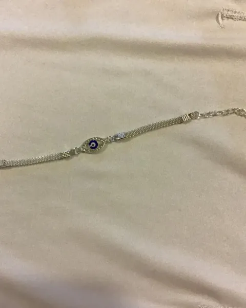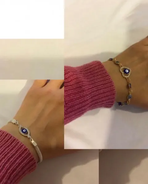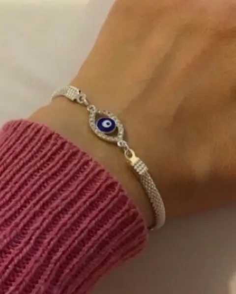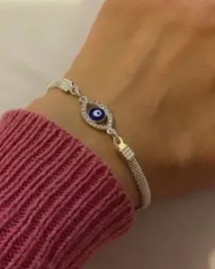 Pulseras plateadas con ojo turco.