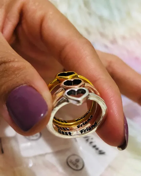 Set 3 anillos con grabado Best Friend. Set de 3 anillos de acero inoxidable talla 6, colores dorado, plateado y rose gold. Inscripción interna “Best friend”. Ideales para regalar a tus amigas y tener un hermoso detalle en común. Totalmente nuevo.