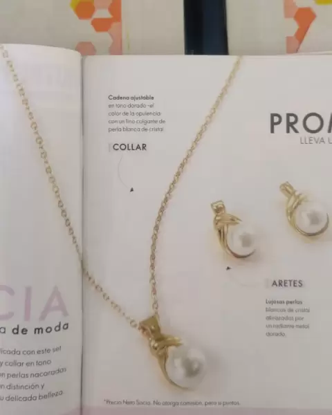 💎💎Hermoso Collar tono dorado con cadena ajustable y colgante de perla blanca de cristal incluye aretes del mismo modelo 💎💎Empaque tipo cajita de regalo 🎁Marca oriflame