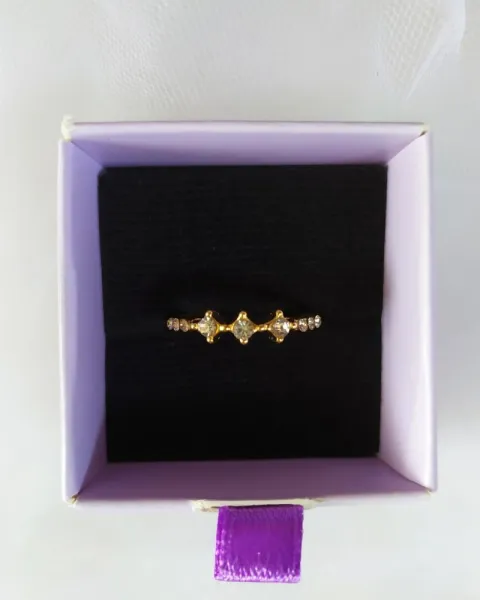 Set de 5 anillos baño de oro 18K. Set con 5 anillos de distinto diseño. Baño de oro de 18K. Talla 7. Uno tiene pequeños brillantes. Marca Victoria Zolassi originales.