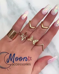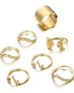 Set de 7 Anillos dorados con pedrería de diferentes diseños. Aleación de zinc