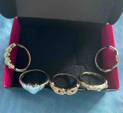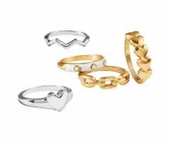 Set de 5 anillos súper bonitos y combinables de la marca cyzone.Talla 7Totalmente nuevos en su empaque.Precio de catálogo y tienda en línea $320