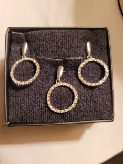 Acabado: pulidoFantasia finaMaterial: latón Tipo de gema: zirconiaAretes cortosDije pequeñoSin cadena (no la incluía)