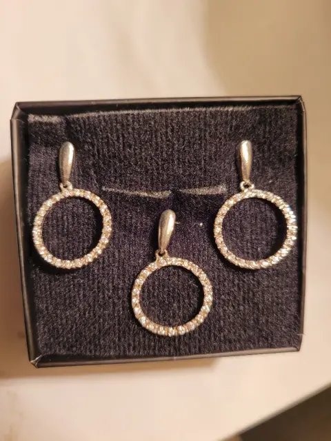 Set de aretes y dije Birma. Acabado: pulidoFantasia finaMaterial: latón Tipo de gema: zirconiaAretes cortosDije pequeñoSin cadena (no la incluía)