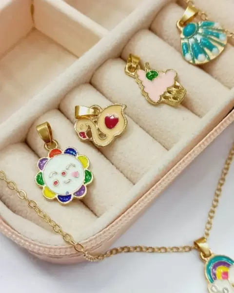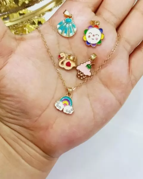 Bellísimo set de cadena con 5 dijes.Aleación enchapado y esmaltado.Largo cadena 42 cms + extensibleCompletamente nuevo, sin detalle y listo para enviar.*PRECIO FIJO POR COMISIÓN*